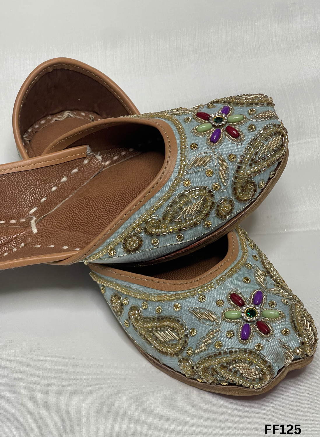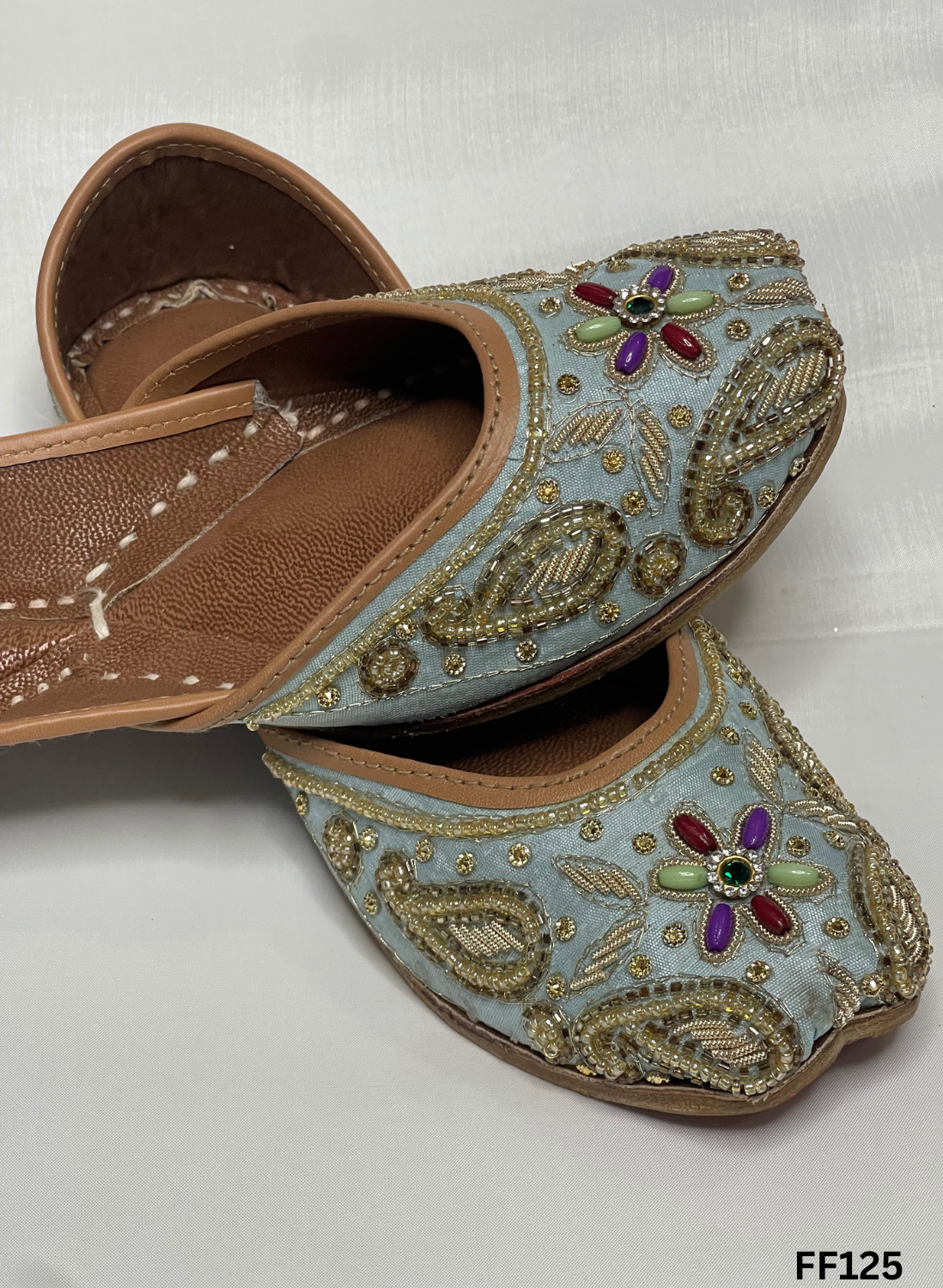 FF125 | Light Sky-Blue | Hand-Work | Punjabi Jutti