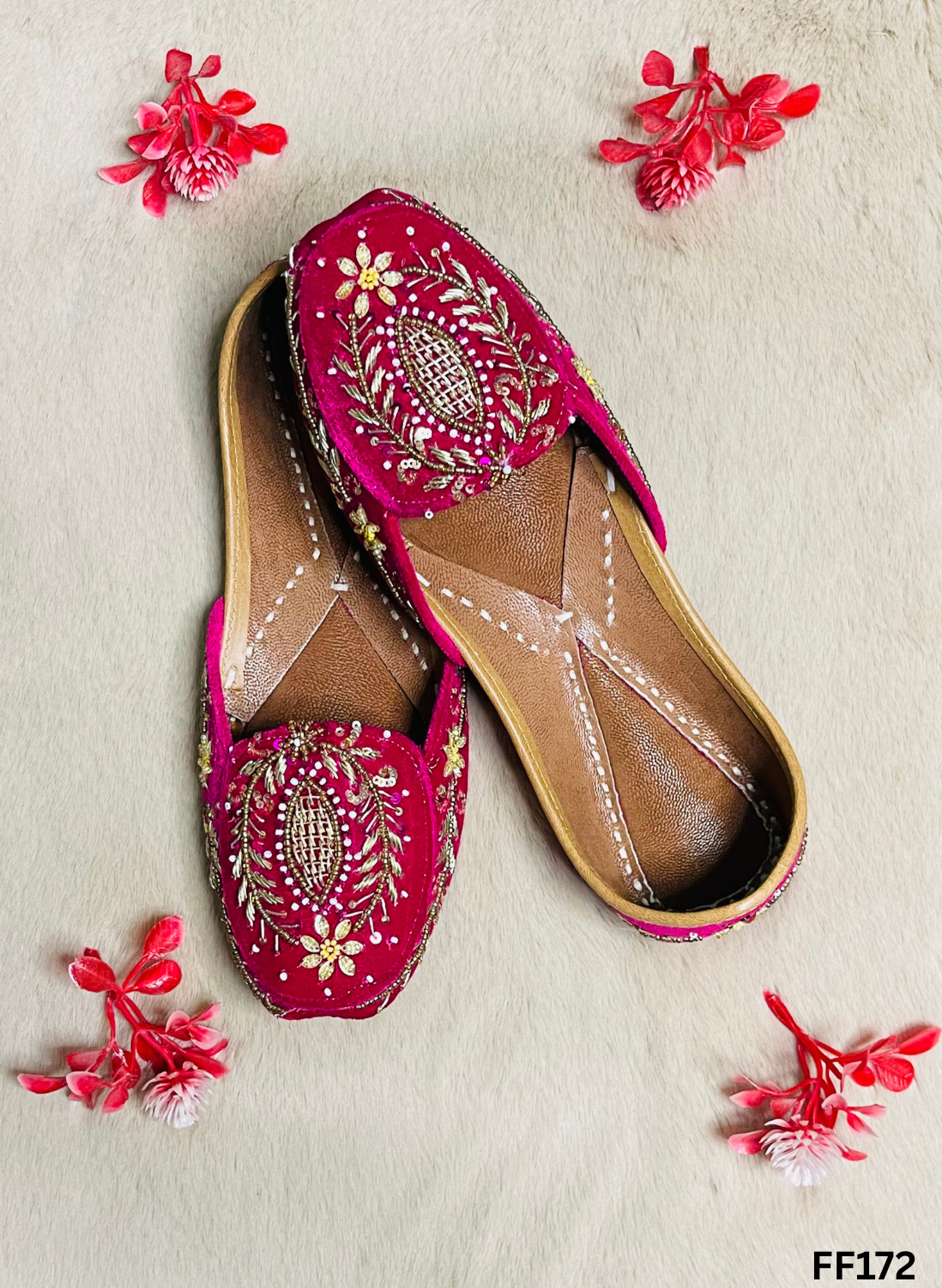 FF172 | Hot-pink | Hand-Work | Punjabi Jutti