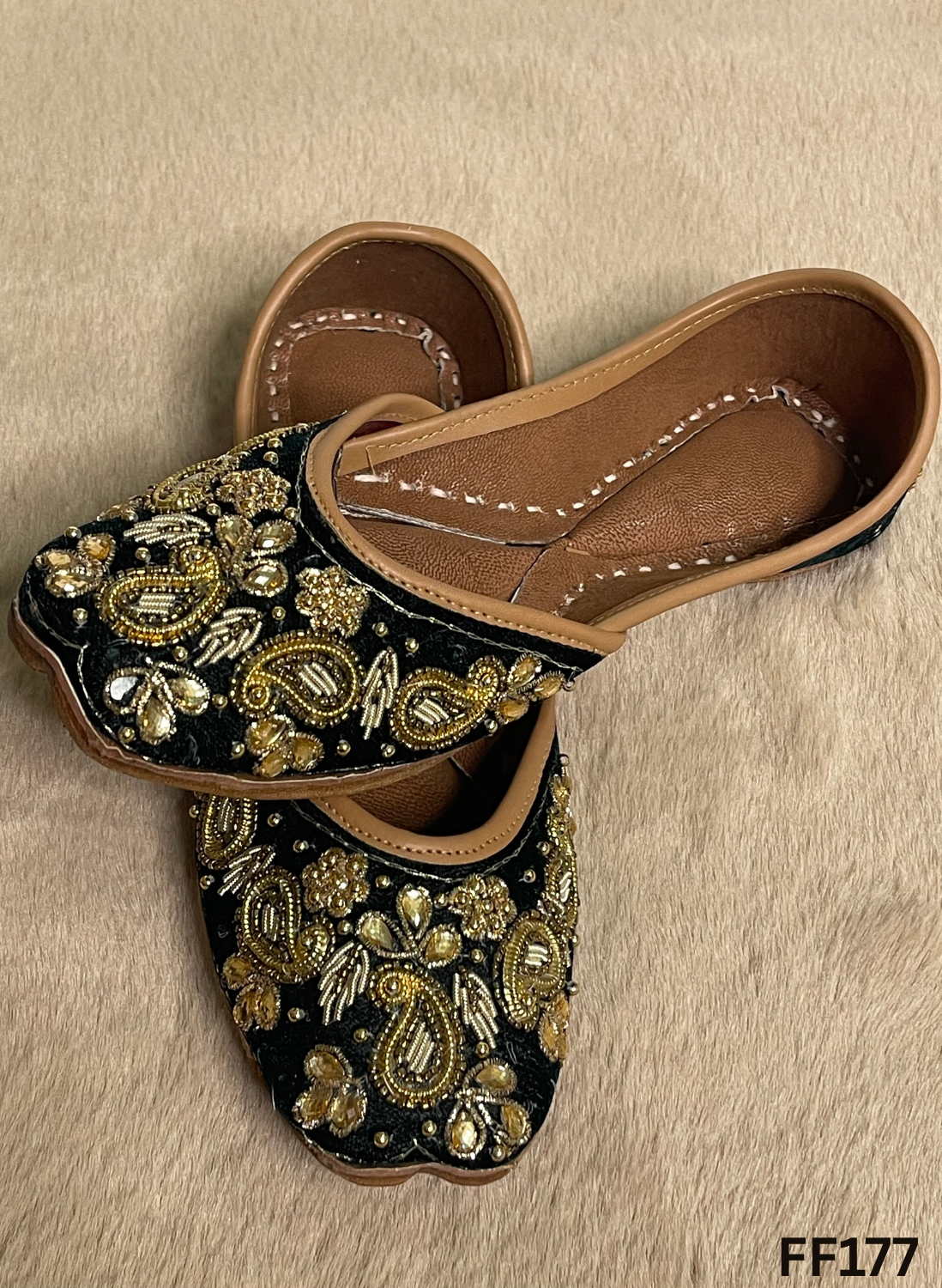 FF177 | Black | Velvet | Hand -Work | Punjabi Jutti