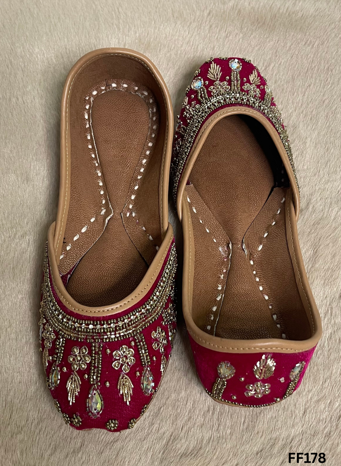 FF178 | Pink | Velvet | Hand -Work | Punjabi Jutti