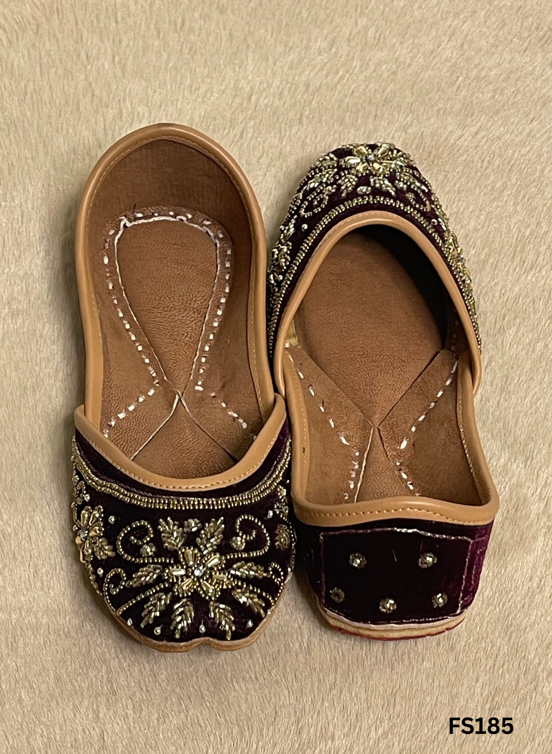 FF185 | Wine | Velvet | Hand -Work | Punjabi Jutti