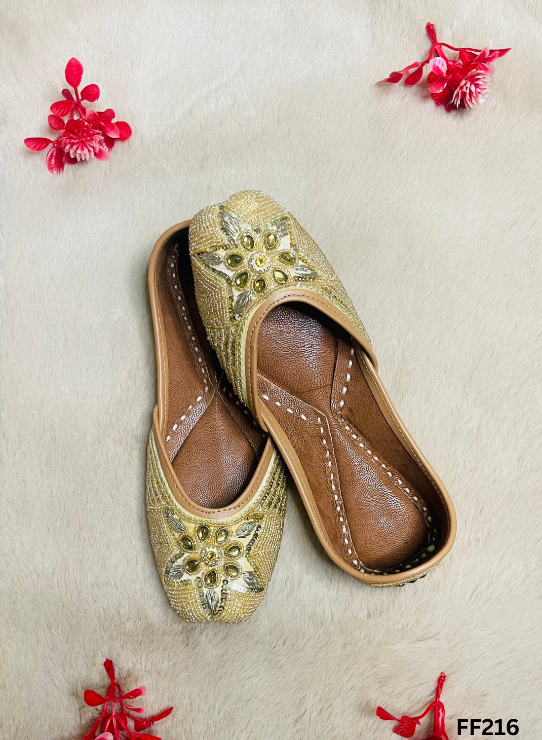 FF216 | Golden | Hand -Work | Punjabi Jutti