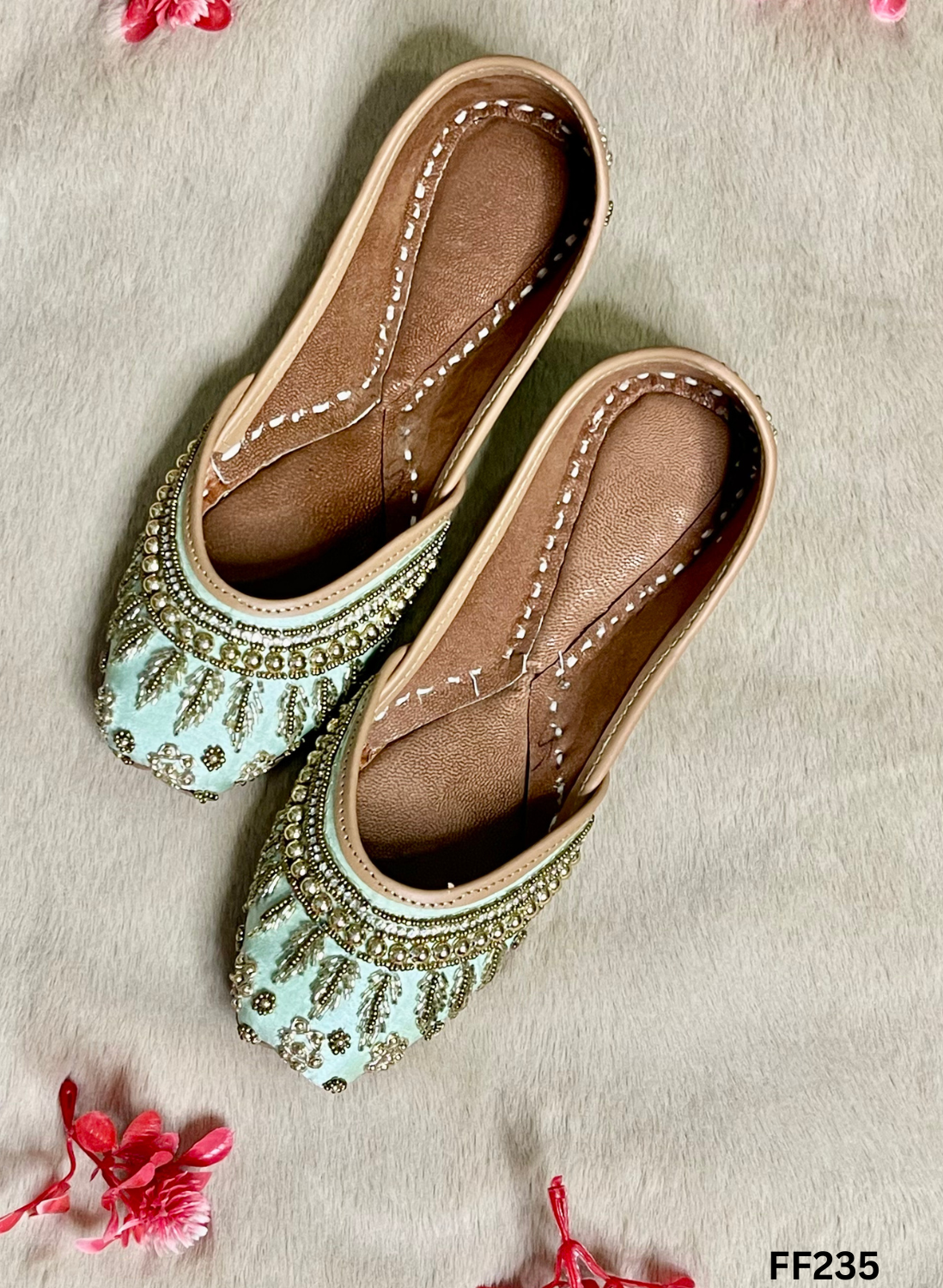 FF235 | Light Sea-Green | Hand -Work | Punjabi Jutti