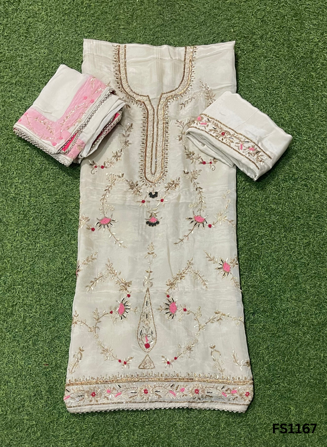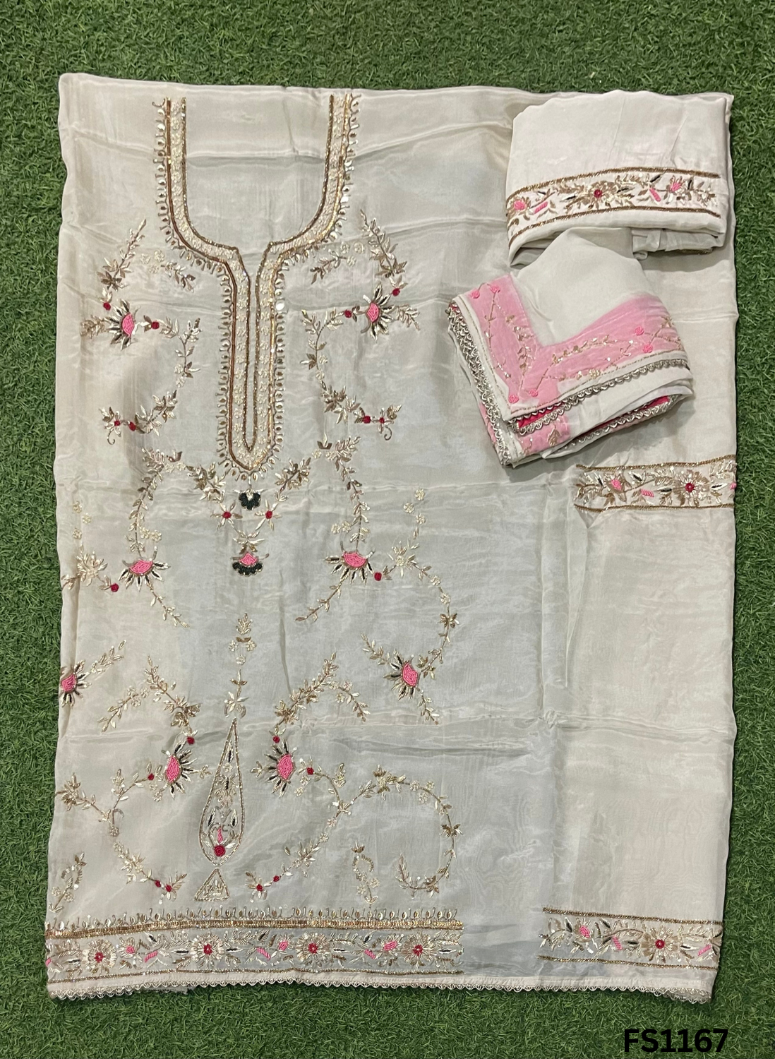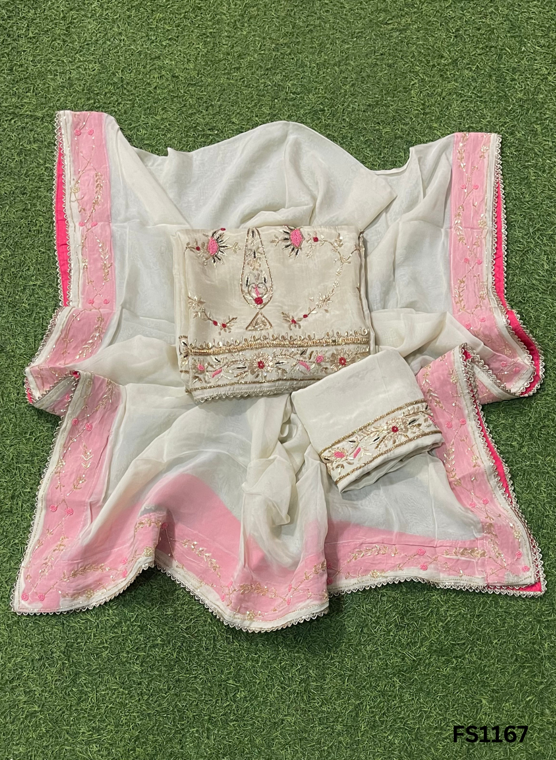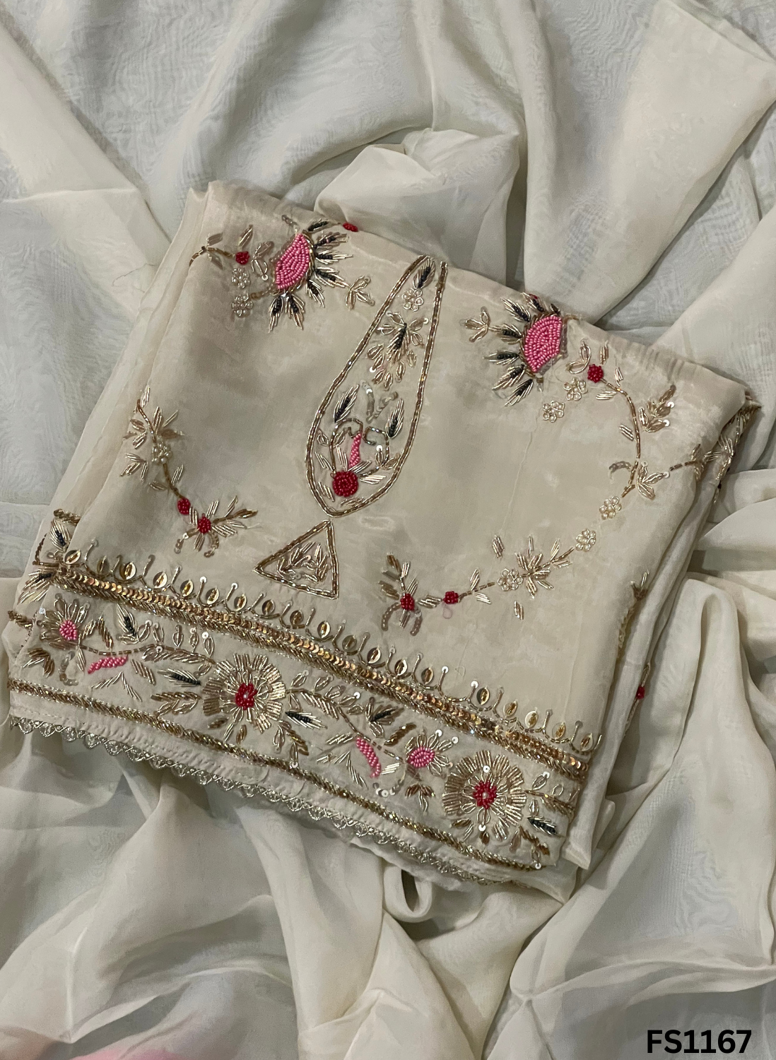 FS1167 | Off-White | Silk Organza Suit | Party Wear | Wedding | Jaggo | Ring Ceremony | Festival