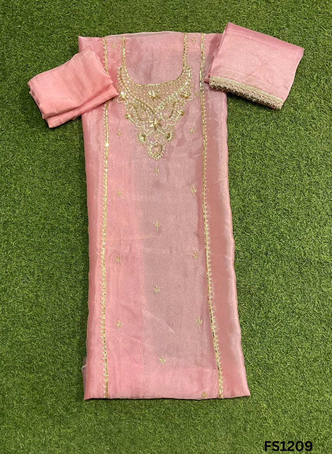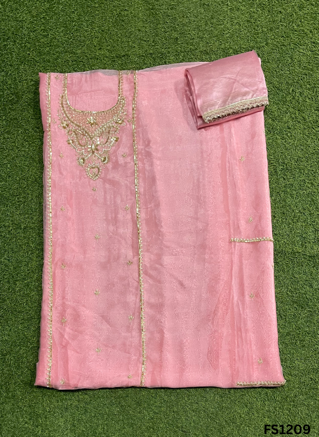 FS1209 | Peach | Glass Shimmer Suit | Party Wear | Wedding | Jaggo | Ring Ceremony | Festival