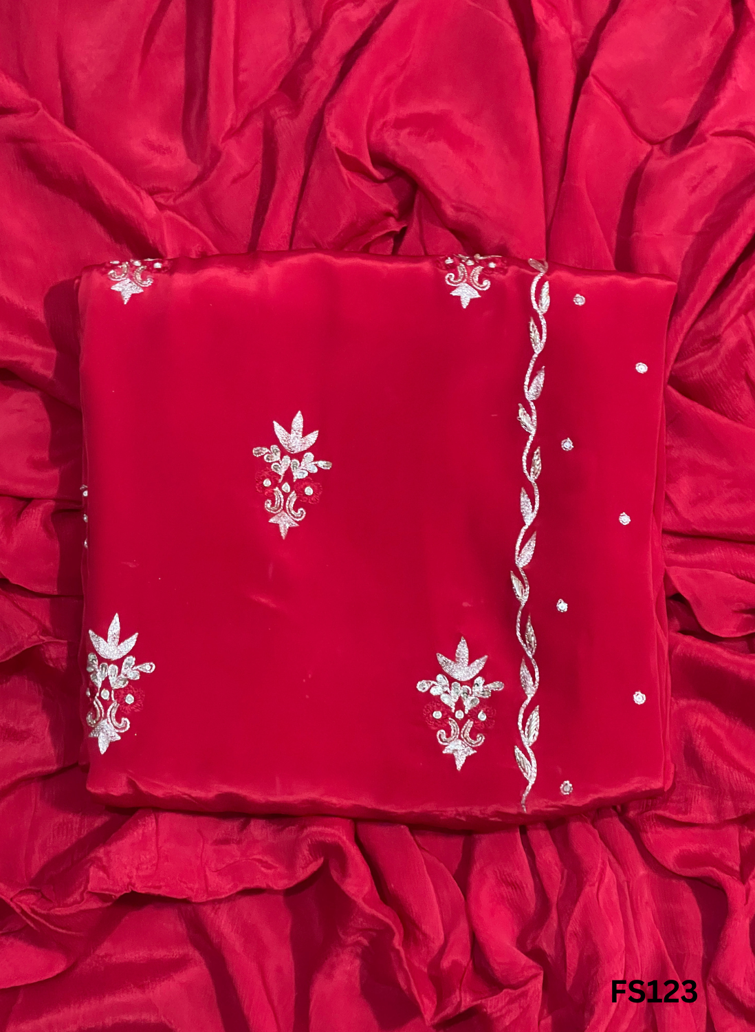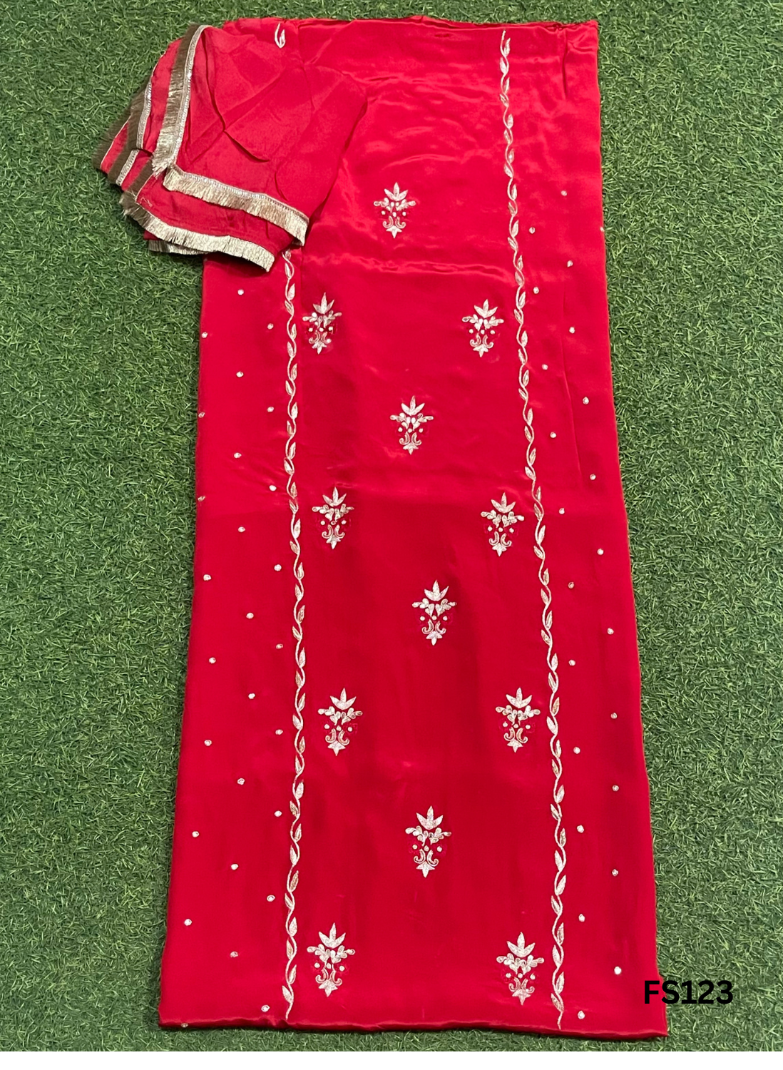 FS123 | Red | Crepe | Party Wear | Wedding | Jaggo | Ring Ceremony | Festival
