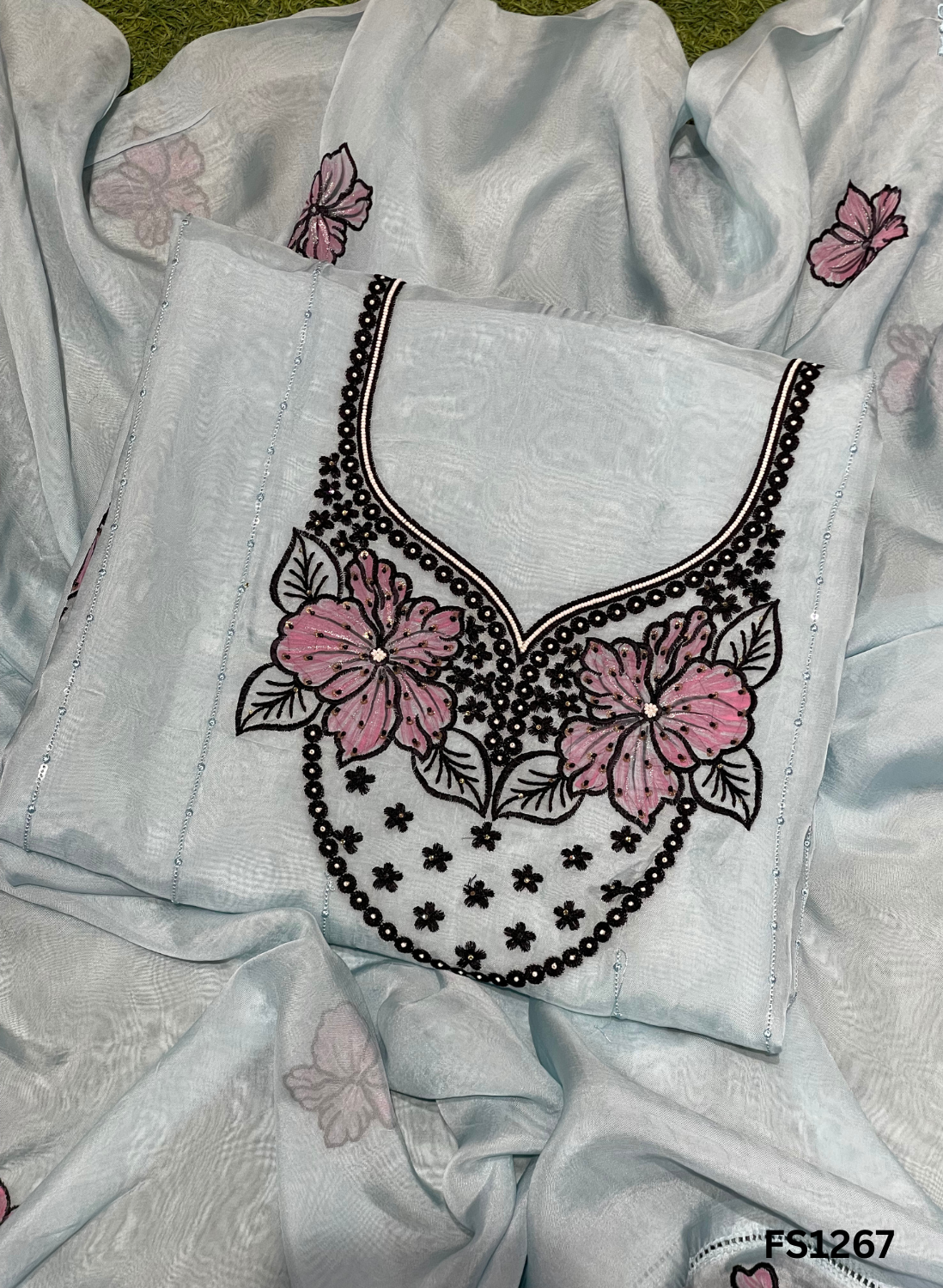 FS1267 | Light Sky-Blue | Organza Suit | Party Wear | Wedding | Jaggo | Ring Ceremony | Festival |
