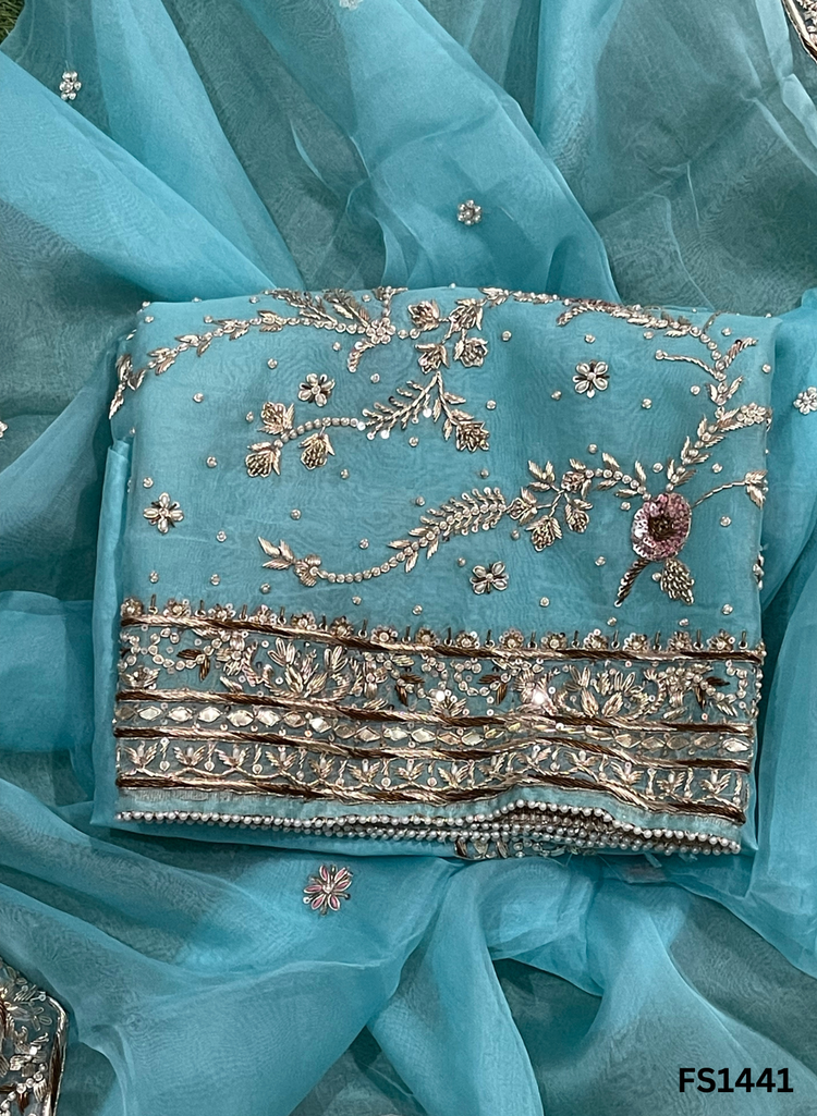 FS1441 | Light Sky-Blue | Organza | Suit | Wedding | Party Wear | Ring Ceremony | Festival Suit | Allover suit
