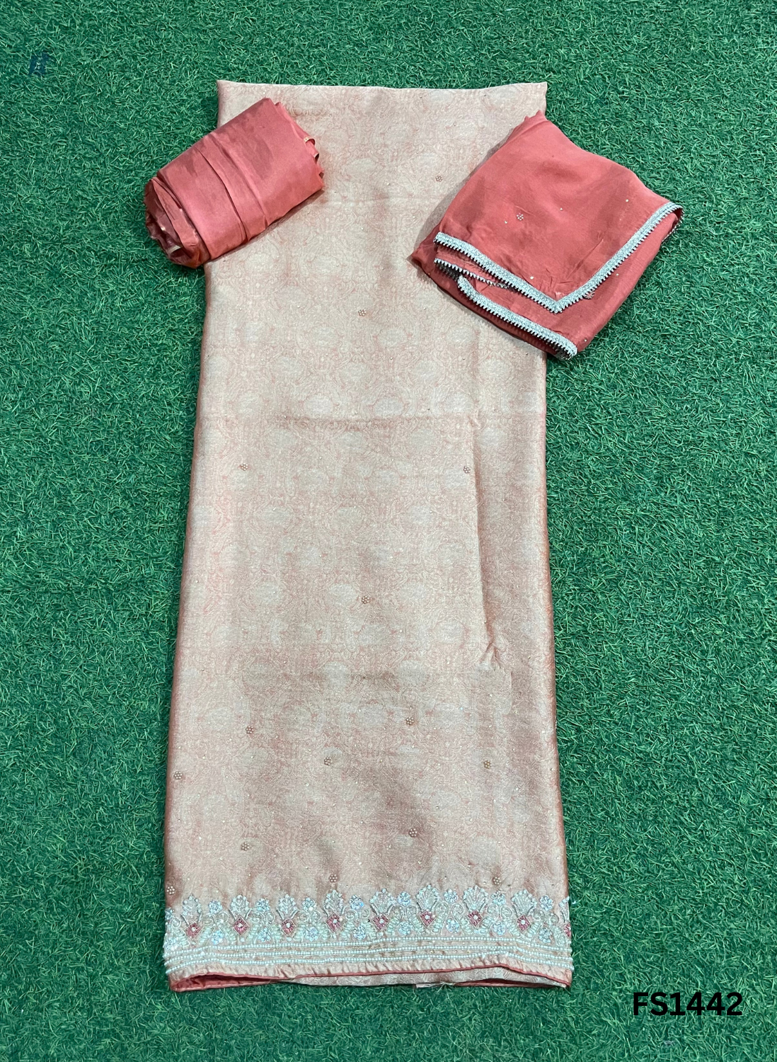 FS1442| Rust | Banarasi Silk Suit| Party Wear | Wedding | Jaggo | Ring Ceremony | Festival