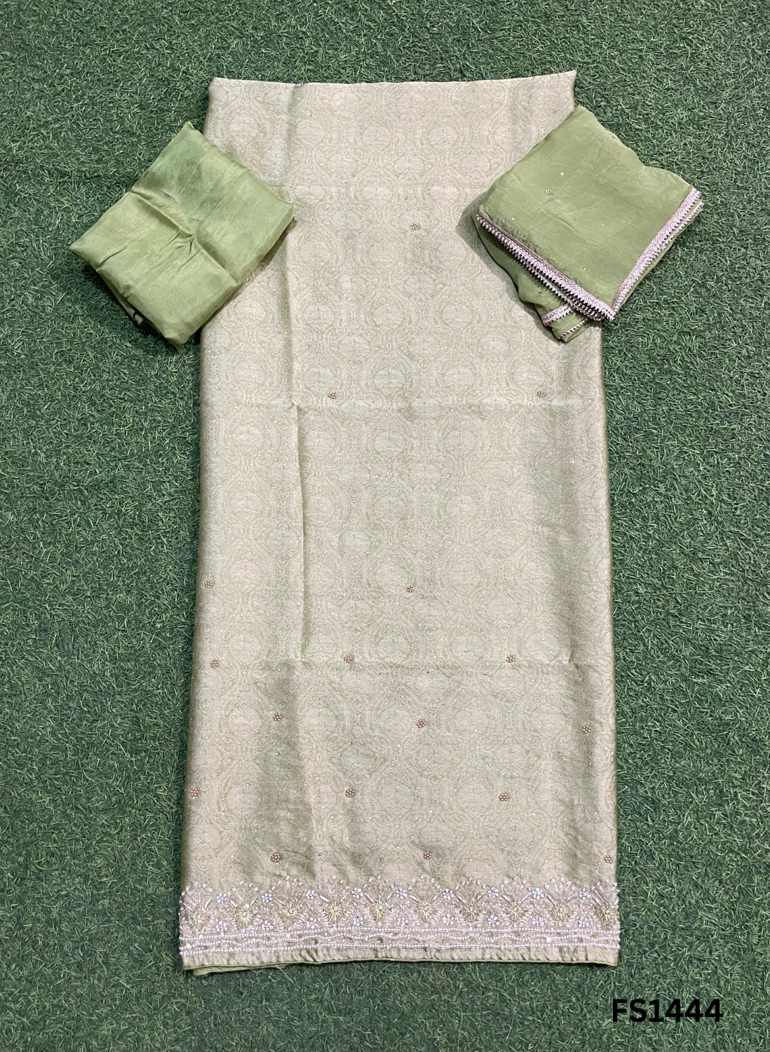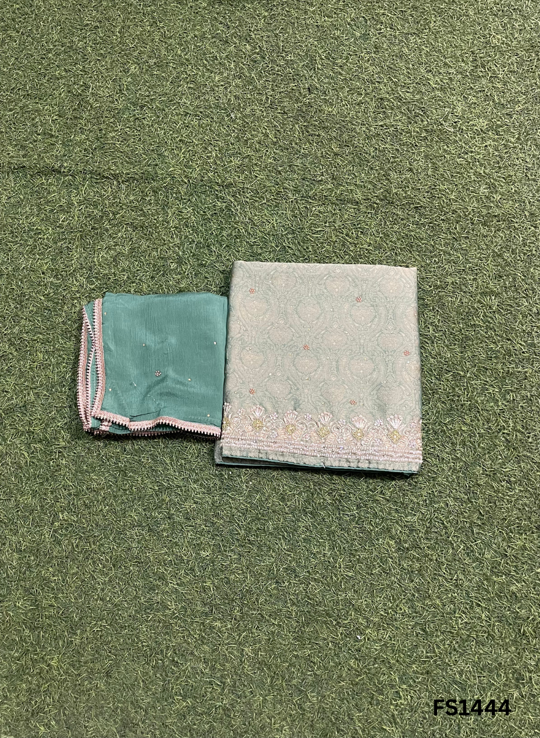 FS1444 | Mehandi green | Banarasi Silk Suit | Party Wear | Wedding | Jaggo | Ring Ceremony | Festival