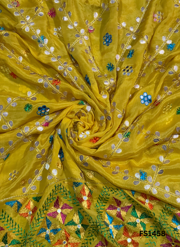 FS1458 | Yellow | Luxurious| Embroidered | Phulkari | 2.5 Meter of Elegance