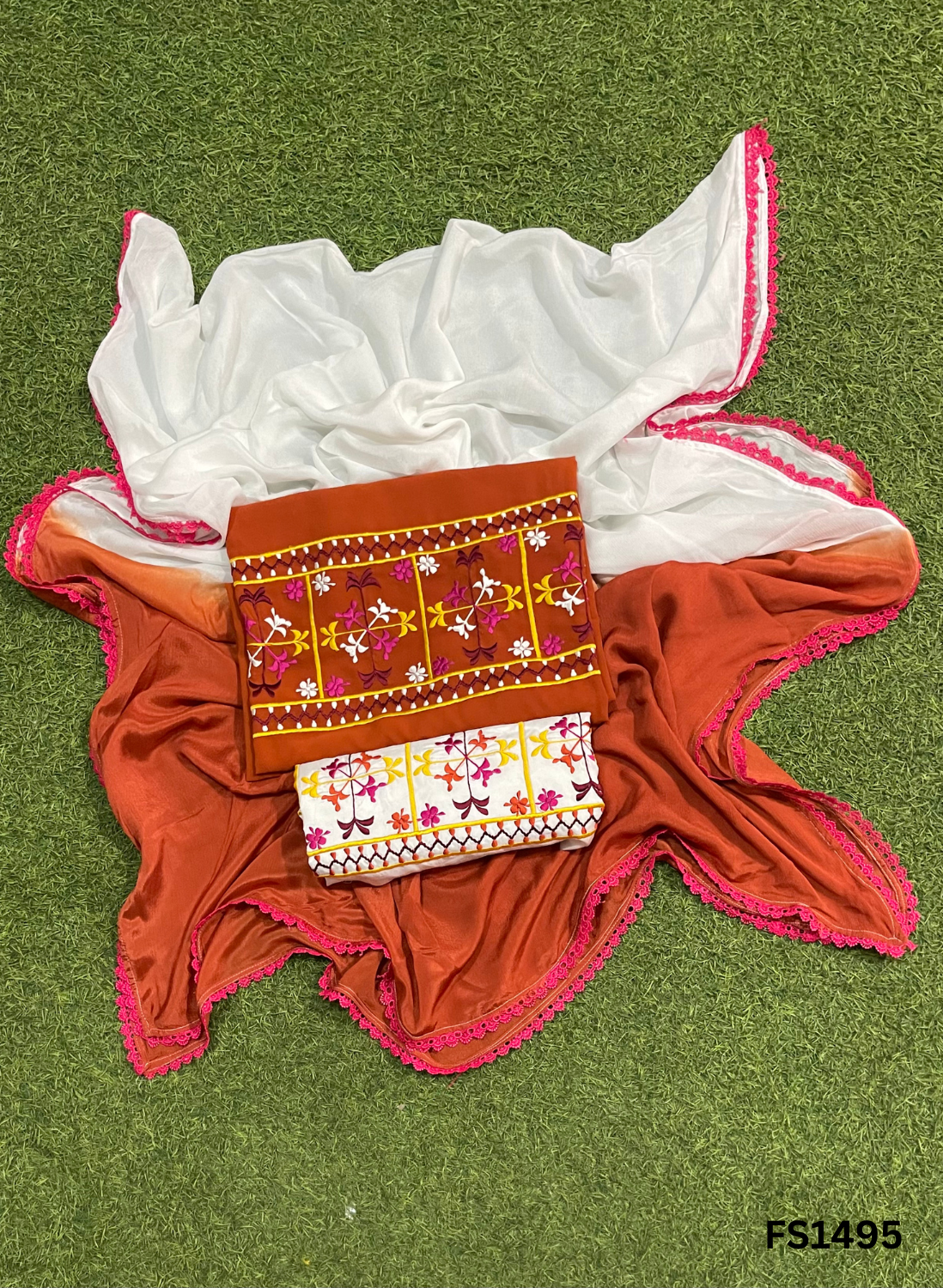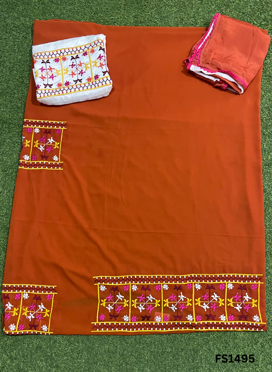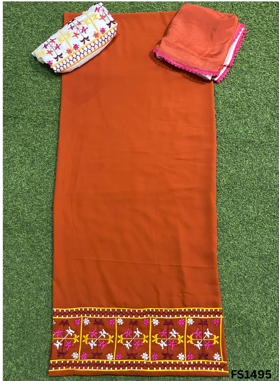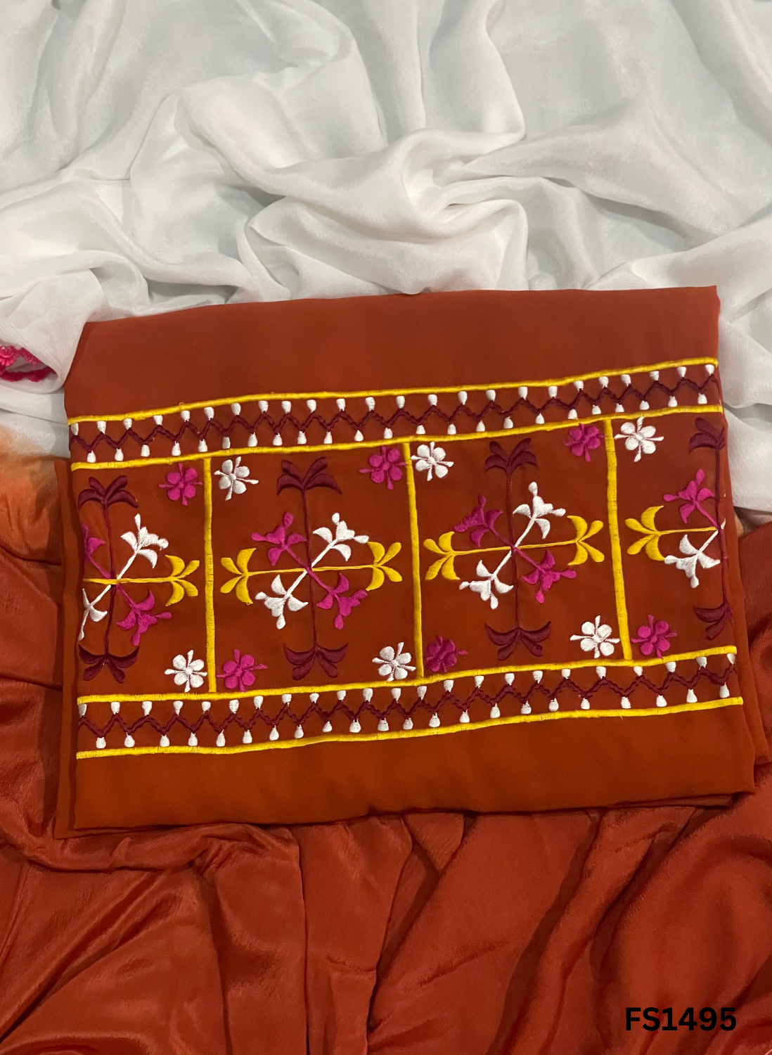 FS1495 | Rust | Georgette Suit | Party Wear | Wedding | Jaggo | Ring Ceremony | Festival