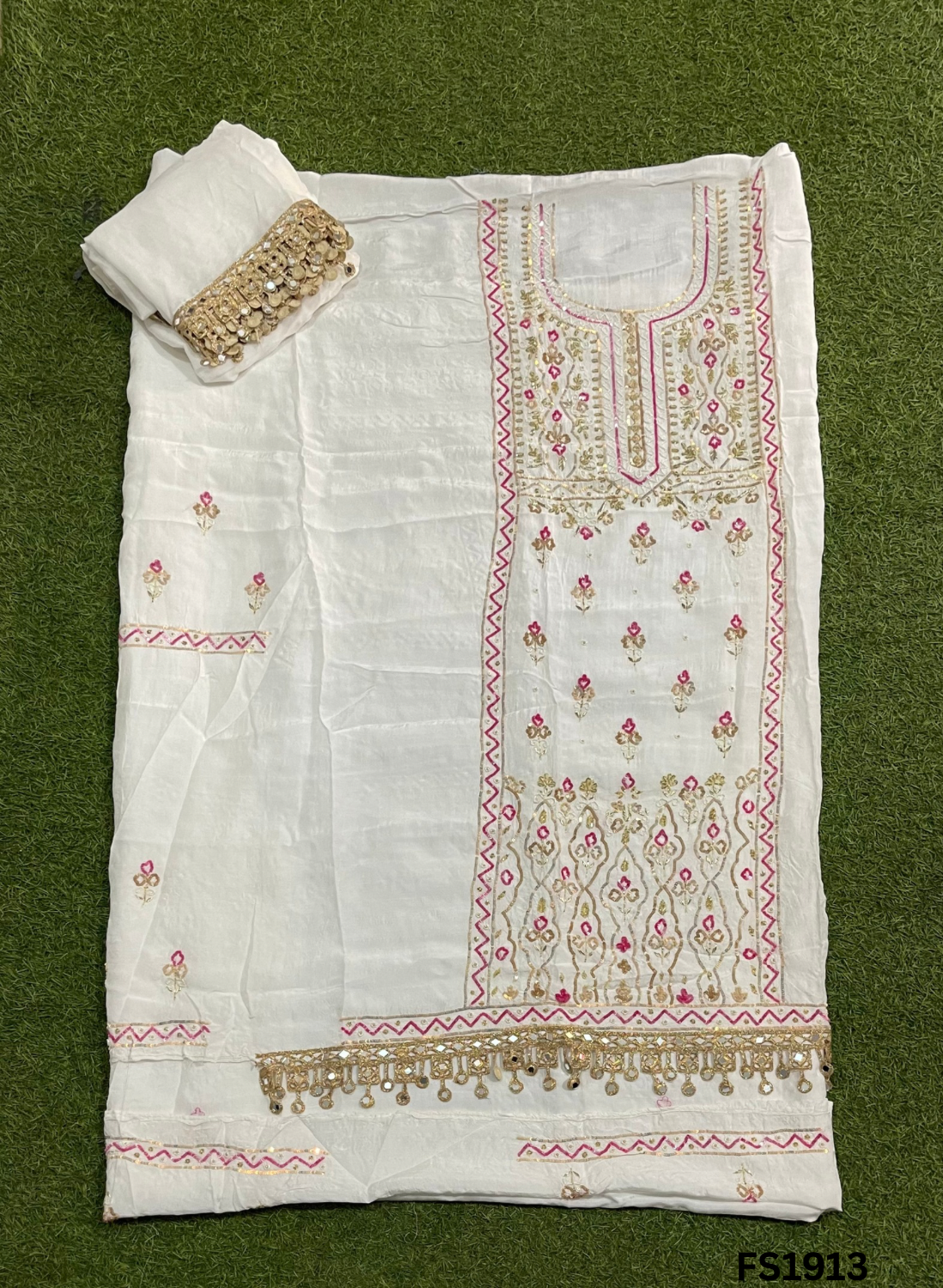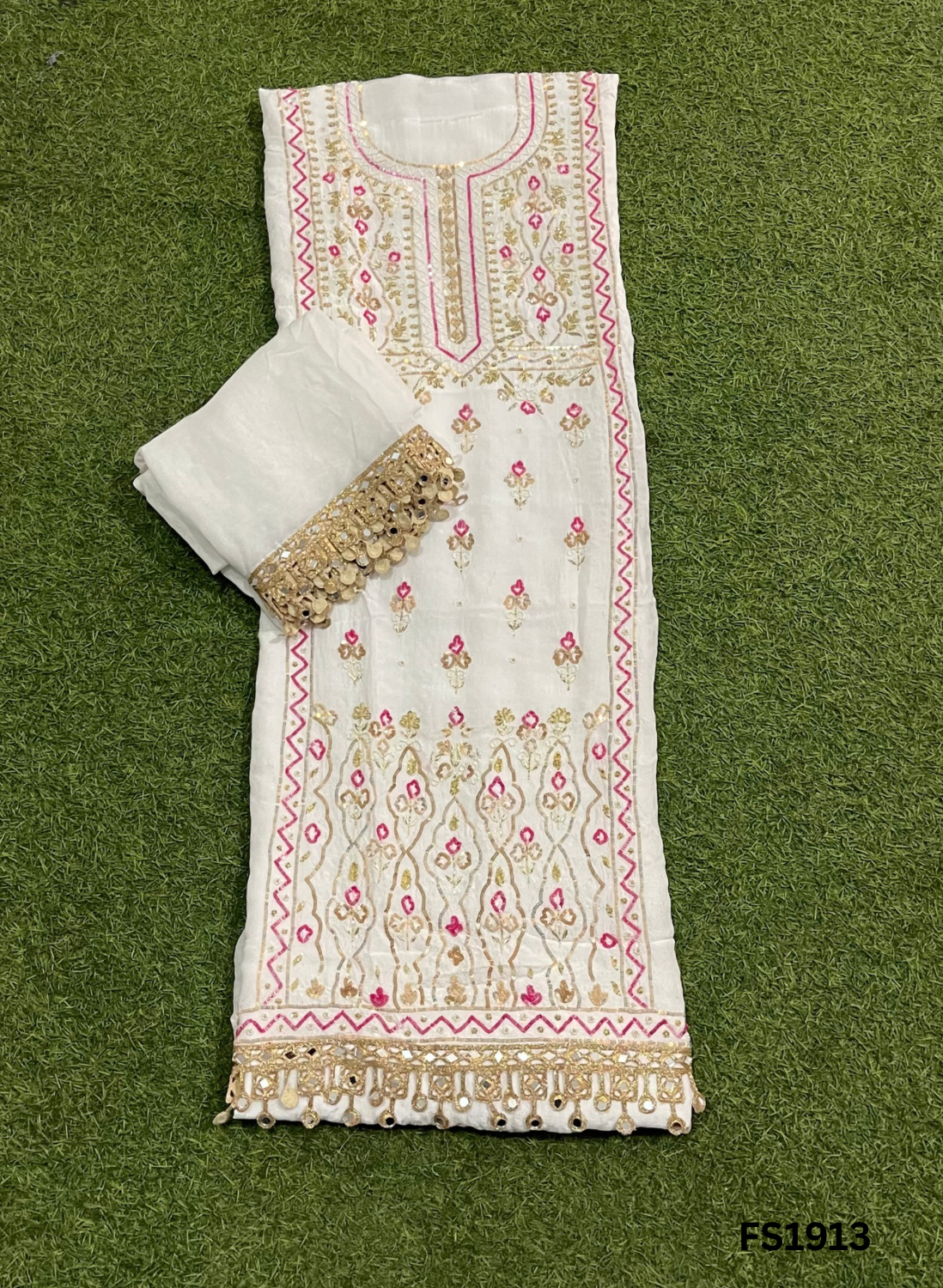 FS1913 | Off-White | Raw Silk | Party Wear | Wedding | Jaggo | Ring Ceremony | Festival