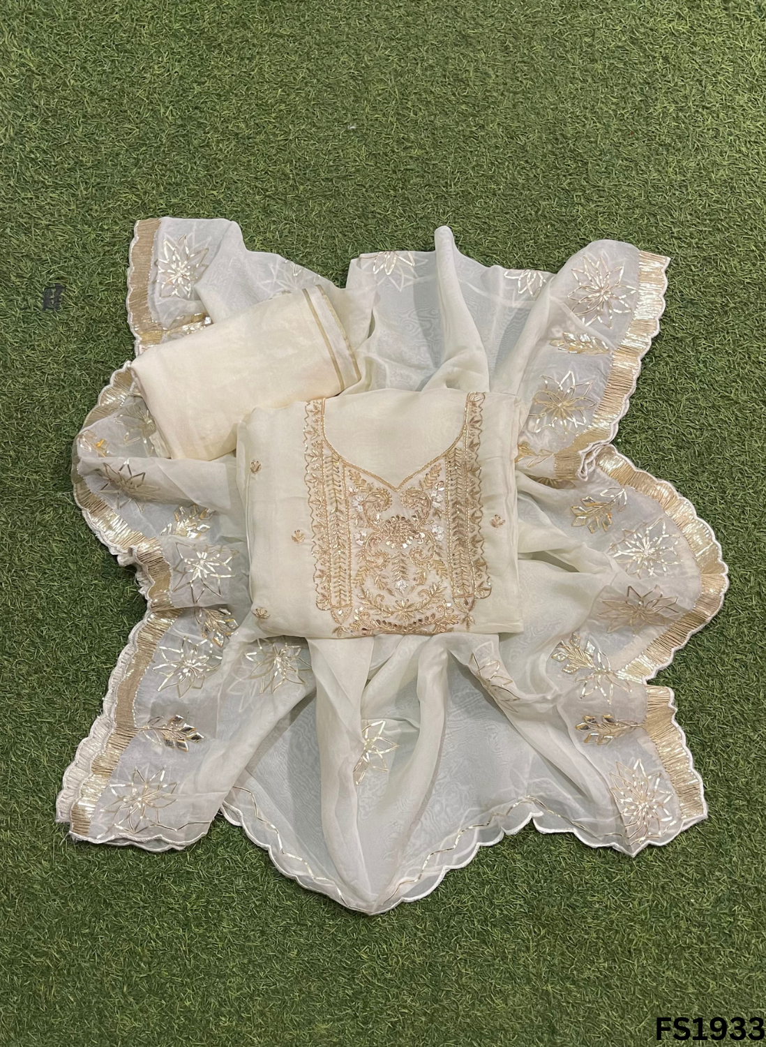 FS1933 | Off-White Organza | Suit | Wedding | Party Wear | Ring Ceremony | Festival Suit | Allover suit