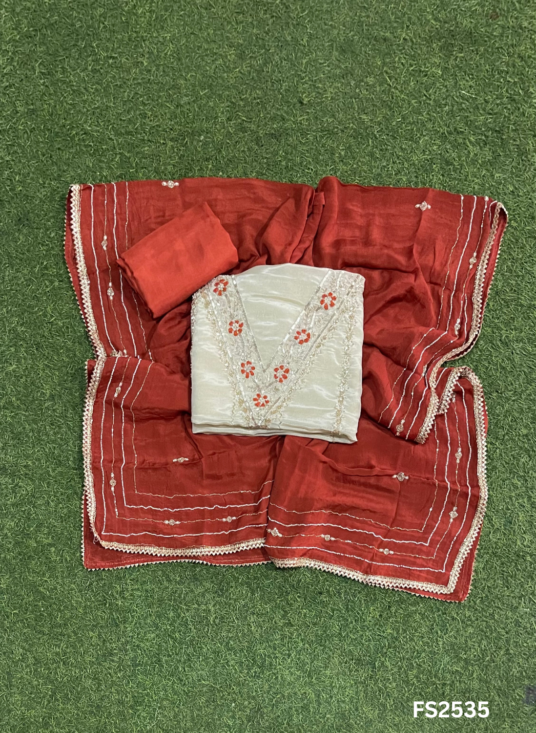 FS2535 | Rust |Shimmer Suit | Party Wear | Wedding | Jaggo | Ring Ceremony | Festival