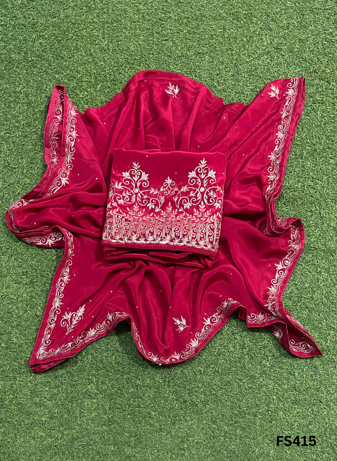 FS415 | RED | Crepe | Party Wear | Wedding | Jaggo | Ring Ceremony | Festival