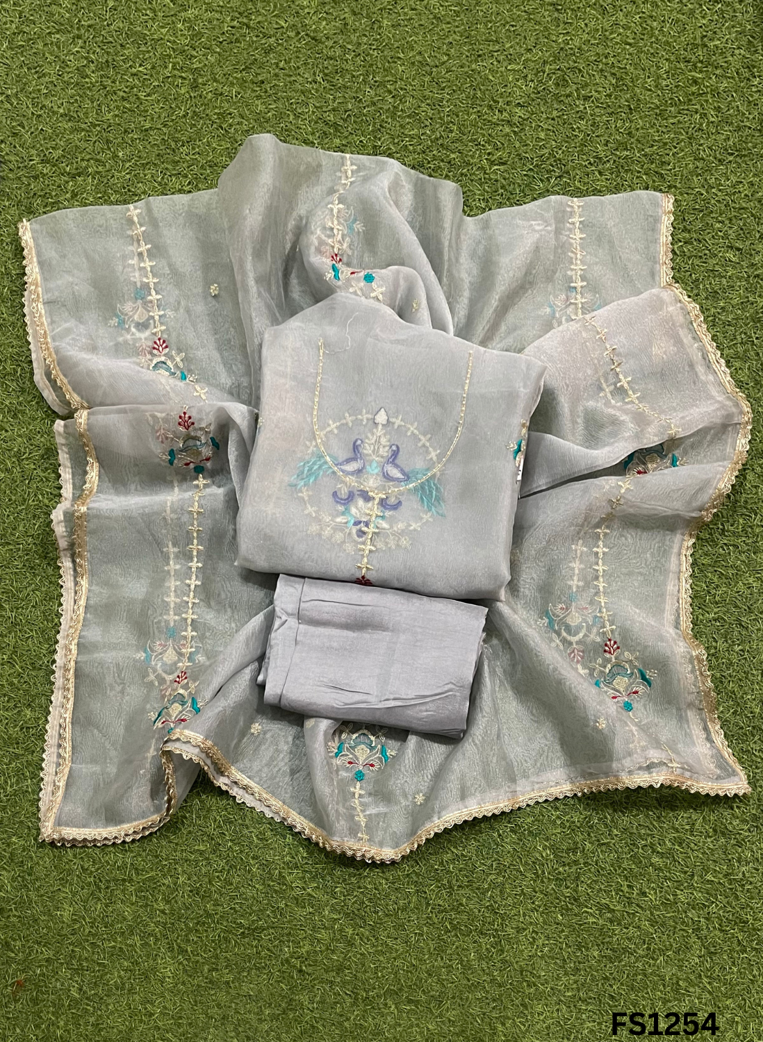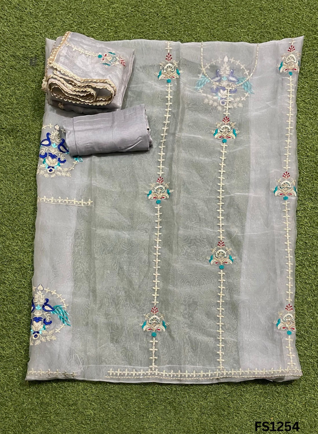 FS1254 | Grey | Crush Shimmer Suit | Party Wear | Wedding | Jaggo | Ring Ceremony | Festival