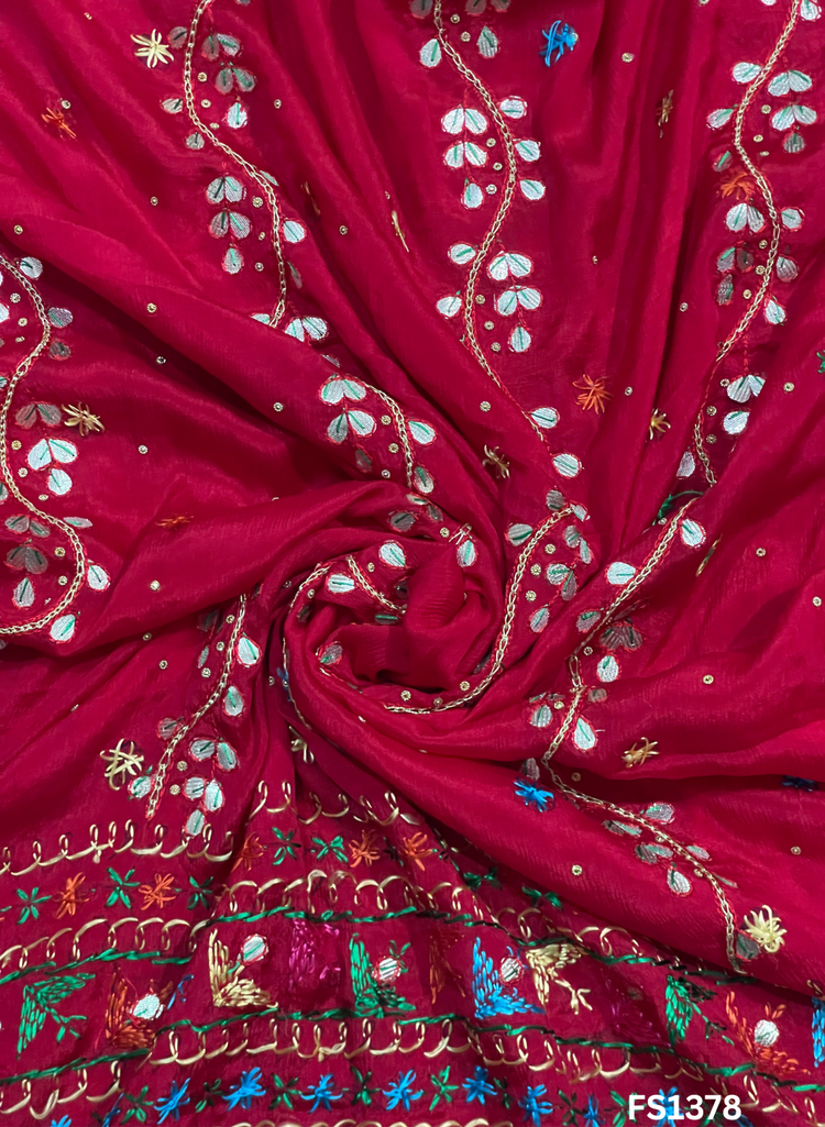 FS1378 | Red | Luxurious| Embroidered | Phulkari | 2.5 Meter of Elegance
