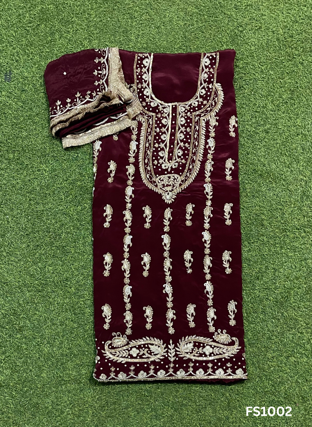 FS1002 | Mehroon | Crepe Suit | Bridal Suit | Party Wear | Wedding | Festival | Celebrity | Ring Ceremony