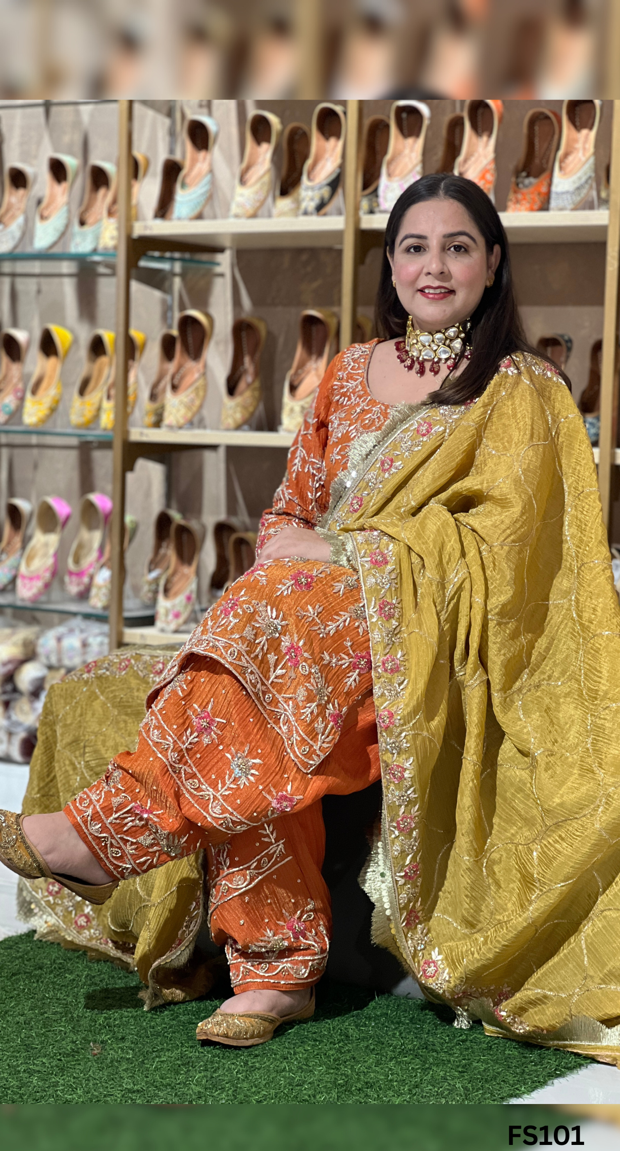 FS101 | Rust | Crush Shimmer Suit | Party Wear | Wedding | Jaggo | Ring Ceremony | Festival | F9BIAAA