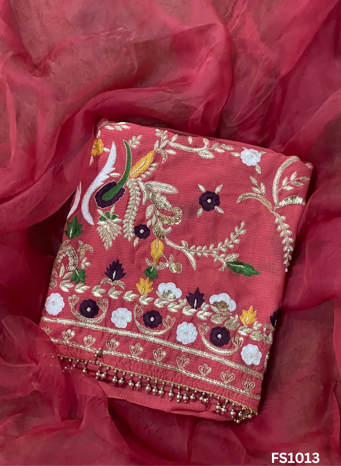 FS1013 | Gajari | Georgette | Party Wear | Wedding | Jaggo | Ring Ceremony | Festival | Hand-Work suit |